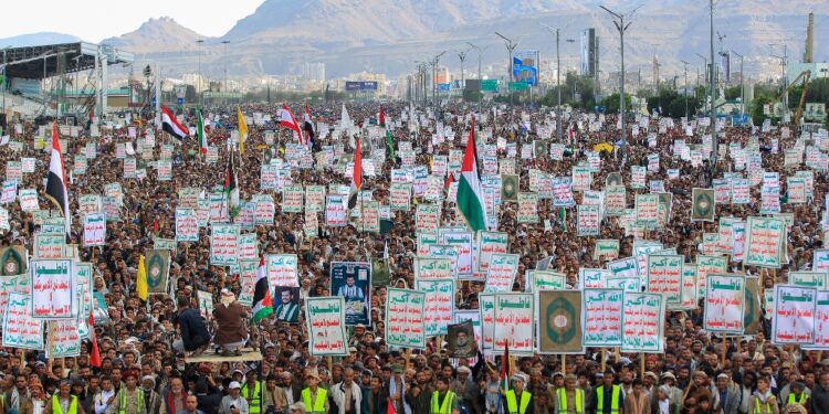 (AFP) – Yemen’s Huthis said on Tuesday they carried out their third attack on American warships in 48 hours, following US strikes on the Iran-backed rebels that sparked mass protests in areas under their control. The rebels also condemned Israel’s wave of strikes on Gaza, which the health ministry in the Hamas-run territory said killed more than 400 people, vowing to escalate their own operations in support of ally Hamas.