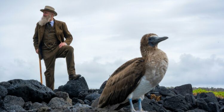 Puerto Ayora (Ecuador) (AFP) – With a long grey beard and old-school brown suit, a Charles Darwin lookalike observes marine iguanas and the blue-footed booby – an iconic bird on the Galapagos Islands.