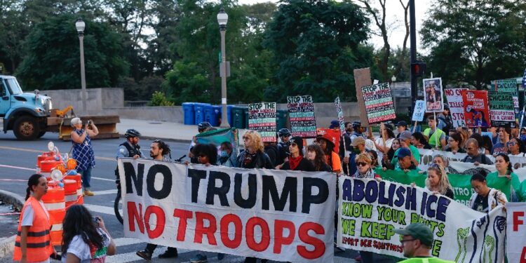 A demonstration against US Immigration and Customs Enforcement (ICE) and possible deployment of National Guard troops in Chicago / ©AFP