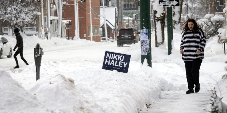 Nikki Haley has overtaken Ron DeSantis for coveted second place in the Iowa caucuses, the last poll before the event showed Saturday, but former US president Donald Trump still leads by nearly 30 percentage points.The Midwestern state of three million people officially kicks off the 2024 US presidential election on Monday when its residents participate in its unusual “caucus” system to mark their preference for Republican presidential candidates.Trump received 48 percent of likely Republican caucusgoers’ vote in the NBC News/Des Moines Register/Mediacom Iowa poll, which is notable for its historical accuracy and ability to fuel last-minute surges.Election watchers have been looking for signs of a potential jump by Haley, a former UN ambassador and South Carolina governor, after she steadily gained support throughout the primary election season.Haley notched 20 percent of the vote, according to the poll, which is four percentage points up from where she stood in December.Florida Governor DeSantis meanwhile fell three percentage points to 16 percent, it showed.Iowa is a notoriously poor predictor of the eventual nominee, but it is considered crucial for winnowing the field and as a springboard to the next few battlegrounds.Those include Haley’s home state of South Carolina, as well as her preferred state of New Hampshire where she trails Trump by only single digits.Responding to the poll’s release, Trump urged his supporters to get out and caucus next week despite frigid blizzard conditions.”