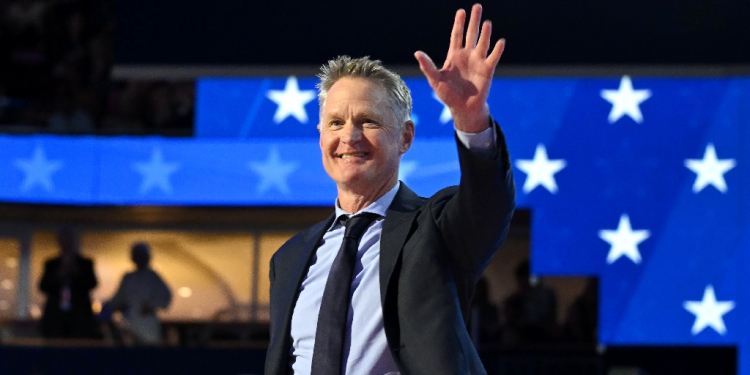 “Think about what our team achieved with 12 Americans in Paris, putting aside rivalries to represent our country,” Kerr told the convention, as he urged voters to support Harris. “Now imagine what we could do with all 330 million of us playing on the same team.” Kerr also took a dig at Trump, referencing a signature move of his star player Steph Curry, who often celebrates crunch-time game-winning shots by putting his hands together by his head as if to say “good night.” Kerr repeated the gesture, and said that on election night November 5, Democrats “can tell Donald Trump, ‘Night, night!'”