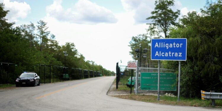 (AFP) – At US President Donald Trump’s new migrant detention center in the Florida Everglades, time has no discernible meaning. Prisoners are barely able to see sunlight in the windowless space, living under fluorescent lamps that are always on, with no clocks or anything else by which they might mark the days. Several detainees, their family members, and lawyers have denounced appalling conditions at the facility, nicknamed “Alligator Alcatraz” by an administration that has likened undocumented migrants to “animals” and promised to deport millions.