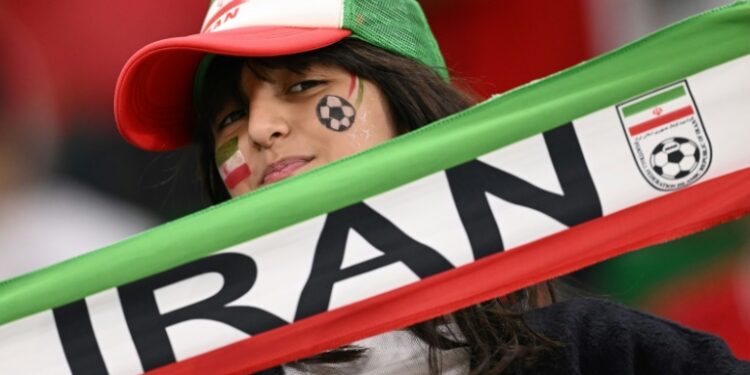 An Iran fan supports her team at a game against the US side at the Qatar 2022 World Cup. ©AFP