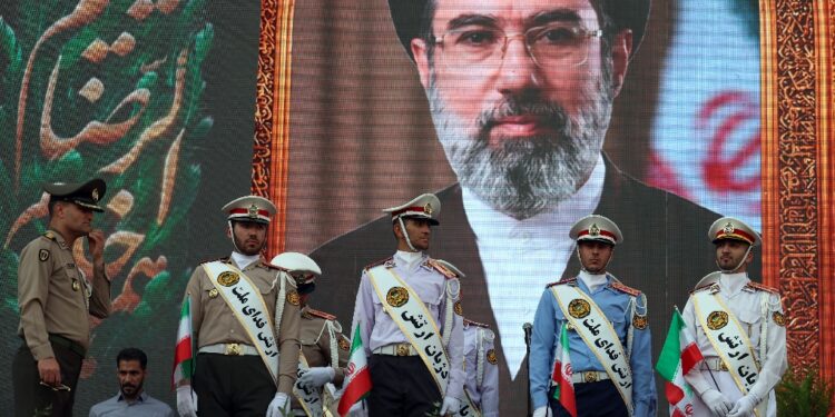Tehran (AFP) – Iran’s supreme leader declared Thursday that the United States had suffered a shameful defeat, defiantly rejecting a warning from President Donald Trump that an economically-punishing US naval blockade could be enforced for months to come. Oil prices hit a four-year high then fell back slightly, before Mojtaba Khamenei issued a written statement that was read out on state television declaring that Iran was now in the driver’s seat in the crisis.