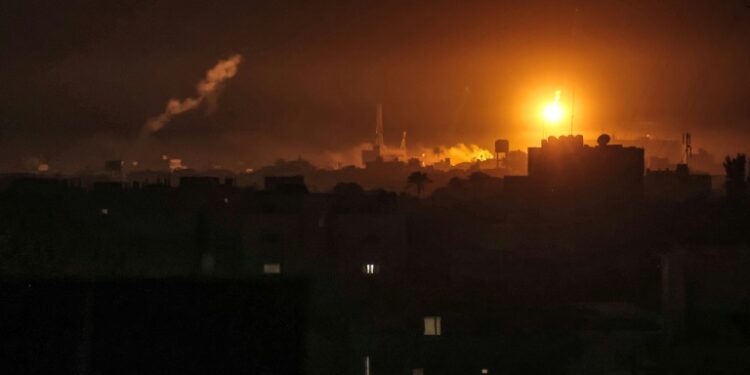 Gaza Strip (Palestinian Territories) (AFP) – Israel hit targets in south Gaza and across its border with Lebanon, the army said Monday ahead of a visit by the top US diplomat who is seeking to avert a wider war.