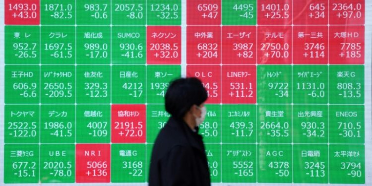 Japan's main Nikkei 225 index fell more than three percent on Friday, adding to a 2.7-percent drop on Thursday after the S&P 500 on Wall Street dropped by the most in a day since 2020. ©AFP