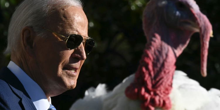 (AFP) – Lame-duck President Joe Biden had a message for Americans at his final Thanksgiving turkey pardon ceremony on Monday before Donald Trump returns to the White House — “keep calm and gobble on.” Biden, 82, spared birds Peach and Blossom from ending up on the dinner table in a quirky and time-honored tradition marking the upcoming US holiday.
