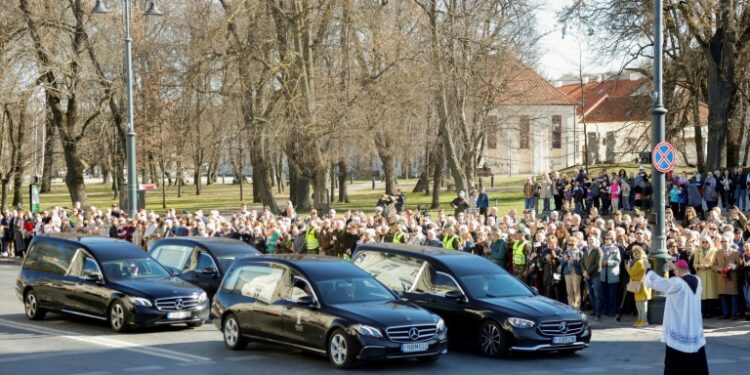 Lithuania, a NATO and EU member bordering Russia and Belarus, hosts more than 1,000 American troops stationed on a rotational basis. Lithuanian President Gitanas Nauseda and other officials watched as a procession with the soldiers’ remains stopped in a central square in the capital Vilnius before the bodies were flown back to the United States. Hundreds of people held US and Lithuanian flags as the procession passed on an arterial avenue and cathedral bells tolled. The bodies will be flown to Dover, the capital of Delaware.