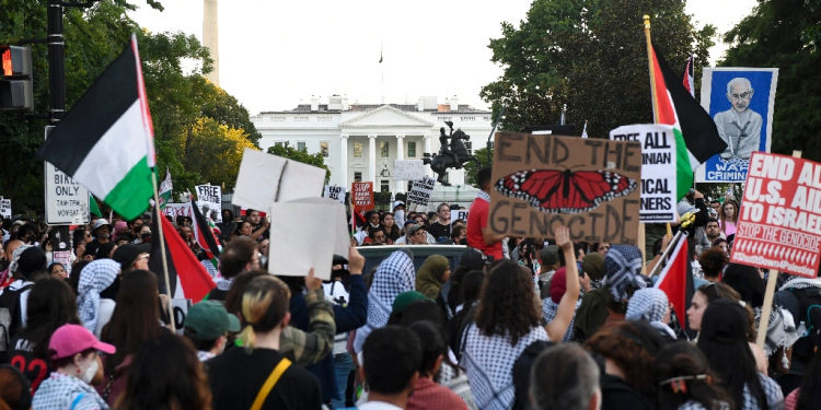 The pro-Palestinian protest began and ended outside the White House in Washington, with demonstrators demanding an end to US aid to Israel / ©AFP