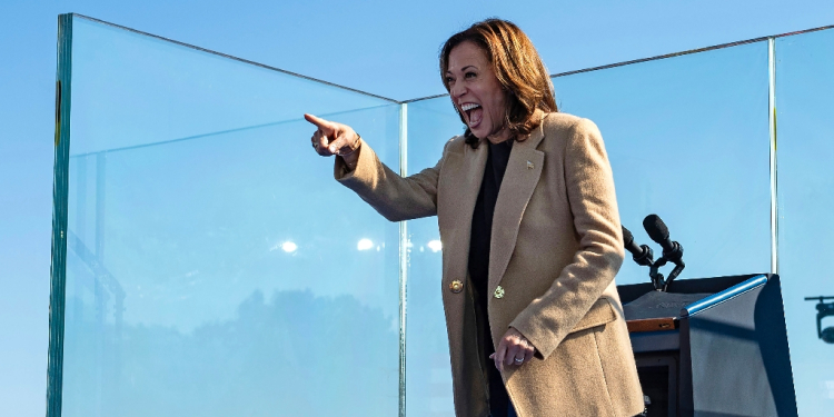 US Vice President and Democratic presidential candidate Kamala Harris gestures as she arrives to speak at a campaign event in New Hampshire / ©AFP