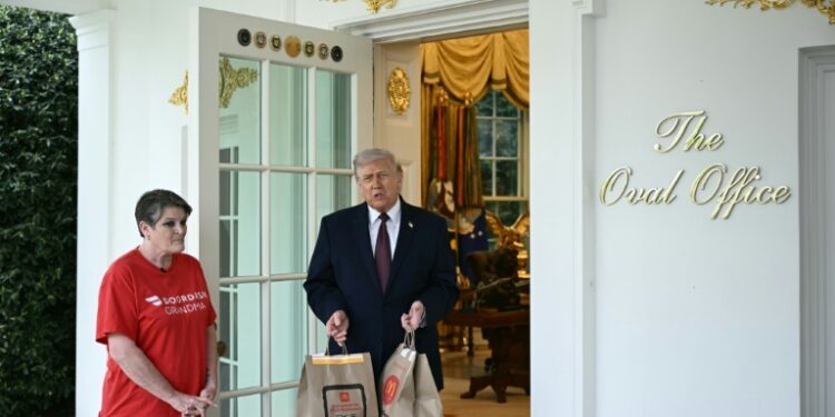 (AFP) – If the McDonald’s delivery to the Oval Office on Monday wasn’t extraordinary enough, President Donald Trump’s press conference on Iran, the pope, and Jesus certainly was. The 79-year-old, a well-known fast food fan, emerged from the heart of the White House to take possession of two bags of burgers from a DoorDash employee.