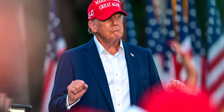 Republican presidential candidate Donald Trump gestures during a rally in Doral, Florida / ©AFP