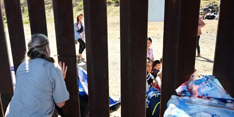Hundreds of migrants congregate by the huge wall marking the US-Mexico border in southern California, a tiny glimpse of the crisis unfolding in American cities as new arrivals strain resources to breaking point.