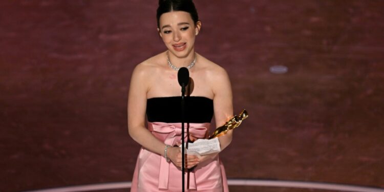 Hollywood (United States) (AFP) – For Mikey Madison, the first time is definitely a charm. The 25-year-old American won the best actress Oscar Sunday for her first major film role in “Anora,” in which she captivated audiences as a sassy sex worker who marries a Russian oligarch’s son and learns tough lessons about the rich-poor divide. Madison made a major critical breakthrough in Sean Baker’s movie, which first won hearts at the Cannes film festival, where it received the Palme d’Or. She was perhaps the most surprising winner of the night, besting heavy favorites Demi Moore (“The Substance”), Cynthia Erivo (“Wicked”), Fernanda Torres (“I’m Still Here”), and scandal-mired Karla Sofia Gascon (“Emilia Perez”).