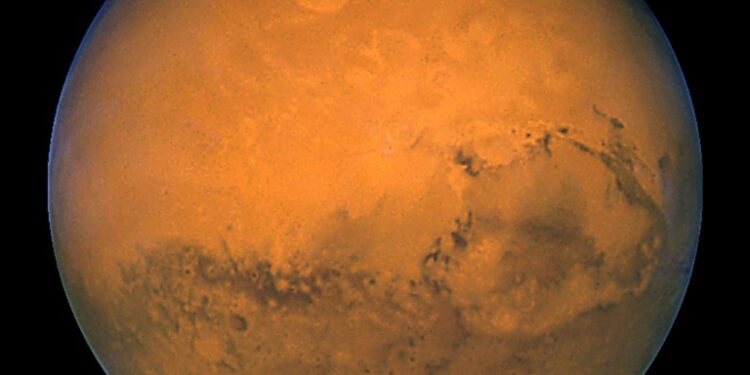 A file photo taken 27 August 2003 by NASA's Hubble Space Telescope shows Mars snapped within minutes of the planet's closest approach to Earth in nearly 60,000 years. ©AFP