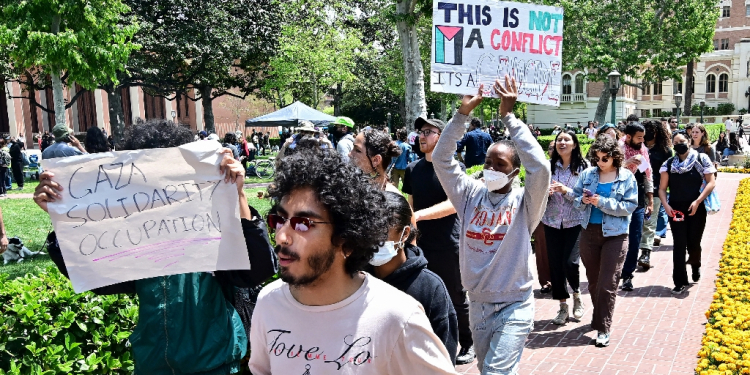 Demonstrations flared at the University of Southern California’s (USC) Los Angeles campus, where 93 people were arrested for trespassing, and at the University of Texas (UT) in Austin, where 34 were arrested, according to authorities.