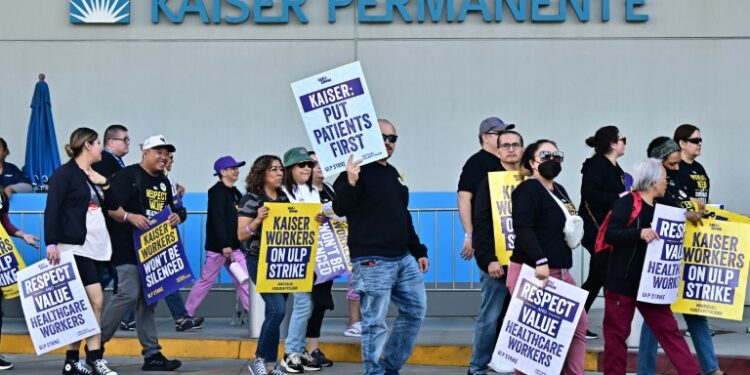 Los Angeles (AFP) – Tens of thousands of health care workers in the United States walked off the job Wednesday, beginning one of the sector’s largest strikes in recent history, as America’s year of labor discontent rolled on.