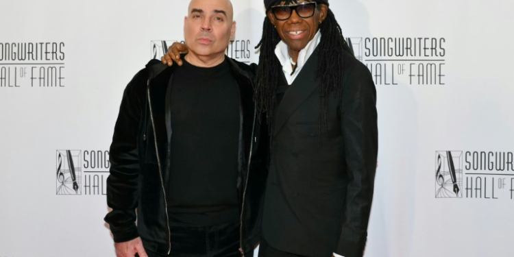 Hipgnosis executive Merck Mercuriadis (L) and co-founder Nile Rodgers attend the Songwriters Hall of Fame 2024 induction and awards gala in New York on June 13, 2024. ©AFP