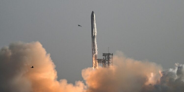 CAPTION: SpaceX's Starship spacecraft lifts off from Starbase near Boca Chica, Texas, on March 6, 2025, during its eighth test flight. ©AFP