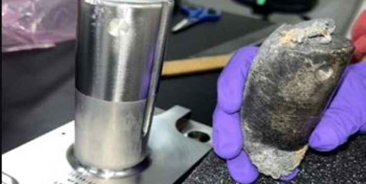 “The object is made of the metal alloy Inconel, weighs 1.6 pounds (0.7 kilograms), is 4 inches (10 centimeters) in height and 1.6 inches in diameter.”