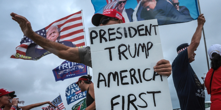(AFP) – There were nerves and prayers among supporters of Donald Trump as they filled a Florida hall for an election results watch party, where the former president was expected to give an address. Men donning formal suits and women in dresses mingled at the Palm Beach County Convention Center event, where they rubbed shoulders with a die-hard Trump fan sporting their political hero’s name emblazoned on a leather vest. Whether dressed in formal attire or more casual wear, many of the attendees wore Trump’s signature red “Make America Great Again” baseball cap.