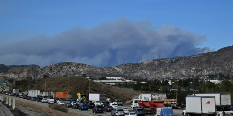 Castaic (United States) (AFP) – A new wildfire erupted north of Los Angeles on Wednesday, exploding in size and sparking orders for tens of thousands of people to evacuate in a region already staggering from the effects of huge blazes. Ferocious flames were devouring hillsides near Castaic Lake, spreading rapidly to cover more than 5,000 acres (2,000 hectares) in just a few hours. The fire was being fanned by strong, dry Santa Ana winds that were racing through the area, pushing a vast pall of smoke and dangerous embers ahead of the flames.
