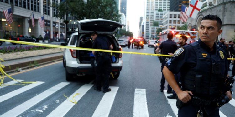 New York (AFP) – A man who gunned down four people then killed himself in a Manhattan skyscraper may have targeted the American football league because he blamed it for brain injuries he claimed he suffered, Mayor Eric Adams said Tuesday. Information that the killer carried in a note referring to the degenerative brain disease CTE offered a possible motive for the Monday shootings at offices used by the National Football League, among others.