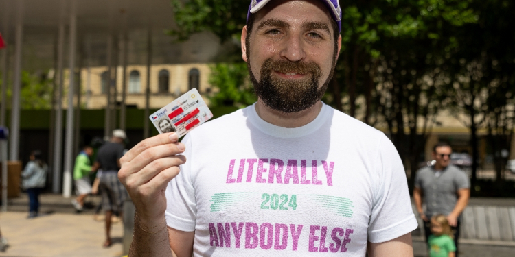 “My name is ‘Literally Anybody Else’, and I’m running for president of the United States,” explains the 35-year-old teacher from Texas.