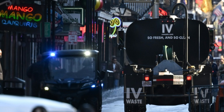 New Orleans (AFP) – New Orleans cleaning crews washed down Bourbon Street Thursday after authorities largely concluded their on-site investigation of a ghastly New Year’s attack as the iconic nightlife hub prepared to reopen. Street cleaners rumbled onto the landmark road through the French Quarter early in the morning, scrubbing surfaces of any signs of the tragedy in which 14 people were killed when a US Army veteran inspired by Islamic extremists rammed a rented pickup truck into unsuspecting revelers. The bloodshed only ended when the suspect crashed and was shot and killed by police after an exchange of gunfire.