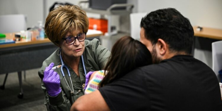Mark Medina brought his children, Shado and her brother Azazel, after they heard about that death. “It kind of sparked fear and we’re like, ‘Alright, it’s time to go get vaccinated. Let’s go,'” the 31-year-old father told AFP. Rachel Dolan, a Lubbock health official, said the initial outbreak spread rapidly through the community south of the town, potentially fueled by a lack of vaccination. “It’s the most contagious virus that we know of, and so just that one little spark, you know, really caused a lot of cases and rapid spread among that population,” she said.