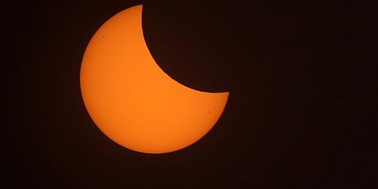 Paris (AFP) – Skygazers across a broad swathe of the Northern Hemisphere will have a chance to see the Moon take a bite out of the Sun on Saturday when a partial solar eclipse sweeps from eastern Canada to Siberia. The partial eclipse, which is the first of the year and the 17th this century, will last around four hours from 0850 GMT to 1243 GMT. Curious observers making sure to protect their eyes might be able to see the celestial show in most of Europe, as well as in some areas of northeastern North America and northwest Africa.