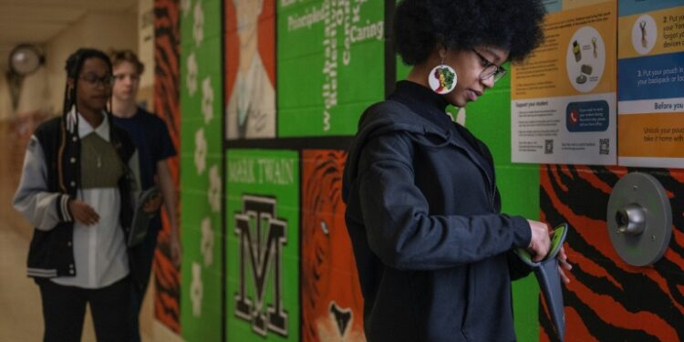 Supporters believe restrictions will guard pupils from the apparent harms of smartphone use while at school, but opponents say the measures fail to prepare teenagers for the digital world they will inevitably enter. Since September, Jones must now place his Android phone in a magnetic pouch each morning, which is locked until the end of the school day as part of a pilot scheme this academic year. Jones, speaking to AFP in a corridor lined with classrooms, said he hopes the ban will be gone by the time he starts eighth grade in September. “I like being able to go to my locker and call my parents. That’s a big concern for me,” he said, adding that some pupils have found ways to still use their devices—including by bringing a “dummy phone” to put in the pouch.