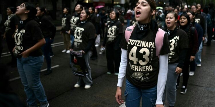 Mexico City (AFP) – Eleven years after her son vanished, Delfina de la Cruz vented frustration at the unsolved disappearances of 43 Mexican students who were allegedly kidnapped by drug traffickers while authorities turned a blind eye. The students from the Ayotzinapa teacher training college — whose members have a history of political activism — had commandeered buses to travel to a demonstration in Mexico City when they went missing on September 26, 2014. The case is considered one of the worst human rights atrocities in Mexico, where a spiral of drug-related violence has left more than 120,000 people unaccounted for.
