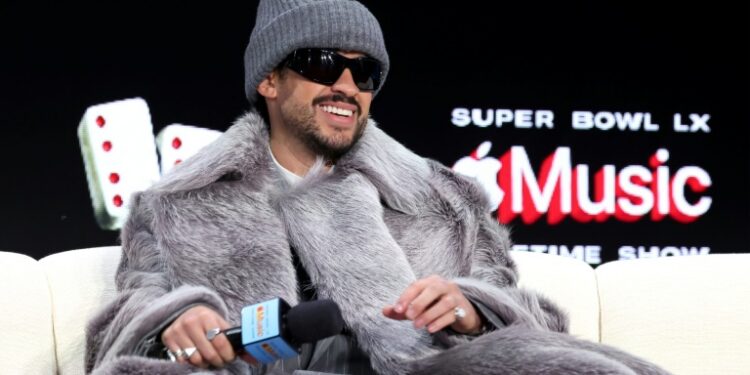 Bad Bunny durante su conversación sobre el espectáculo del intermedio del Super Bowl el 5 de febrero de 2026. ©AFP