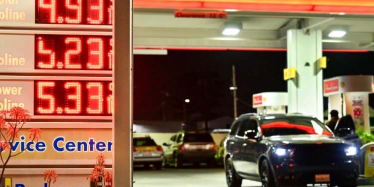 Washington (United States) (AFP) – Sean Robinson, a 54-year-old schoolteacher in the US capital Washington, did not realize how high gas prices had gotten until he arrived at the pump on Friday. “That is a sizeable jump,” he told AFP, pointing to a neon sign showing $3.27 for a gallon of regular gasoline.