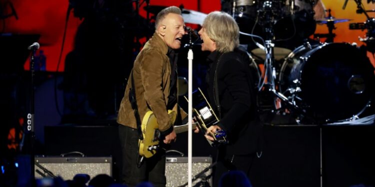 Los Angeles (AFP) – Bruce Springsteen played a blistering duet with Jon Bon Jovi to honor the latter artist at a pre-Grammy gala Friday, as superstars including Paul McCartney danced along to an event heavy on New Jersey pride. The two rock icons had the crowd on its feet for rollicking renditions of Bon Jovi’s hit “Who Says You Can’t Go Home” and Springsteen’s “The Promised Land.”