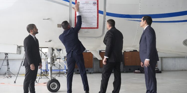 (AFP) – US Secretary of State Marco Rubio on Thursday supervised the seizure of a second aircraft belonging to Venezuela’s leftist government in less than a year, showing a hard line despite nascent diplomacy. Rubio, a passionate opponent of Latin America’s leftist authoritarians like Venezuelan President Nicolas Maduro, witnessed the confiscation of the aircraft at the end of his first trip in the job, which took him to five countries of Latin America.