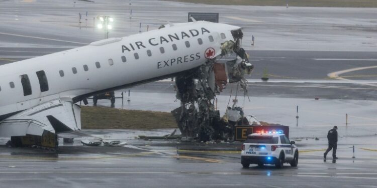 New York (AFP) – Two pilots were killed and dozens of people injured after an Air Canada plane collided with a fire truck on a runway at New York’s LaGuardia airport, US authorities said Monday. The crash late Sunday halted flights at LaGuardia, a major transport hub, as AFP images showed the Bombardier jet tilted back on its tail with a smashed cockpit next to the damaged emergency vehicle. By 2:00 pm (1800 GMT) Monday, the airport said it had reopened but told travelers to still expect delays and cancellations.