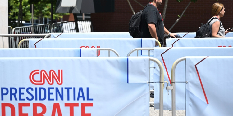 CNN signage ahead of the first 2024 presidential debate between Joe Biden and Donald Trump, in Atlanta, Georgia / ©AFP