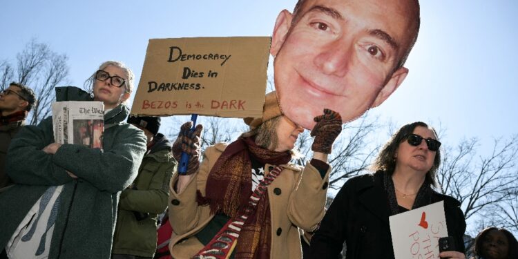 (AFP) – Several hundred people rallied outside The Washington Post headquarters Thursday to protest its decision to lay off hundreds of journalists, including most of its overseas staff. “Democracy dies in darkness. And you, Jeff Bezos, have turned off the lights,” a sign at the demonstration read, referring to the newspaper’s front-page slogan and its billionaire owner, who has become close to President Donald Trump during the Republican’s second term.