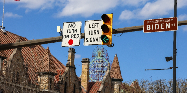 One of the first sights off the interstate from New York — along the President Joe Biden expressway named after Scranton’s most famous son — is a huge trailer truck with a sign for Trump.