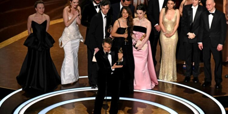 Hollywood (United States) (AFP) – Independent film “Anora” — the tale of a sex worker whose marriage to the son of a Russian oligarch quickly unravels — was the big winner at the Oscars on Sunday, scooping five awards including best picture. Sean Baker’s black comedy also took home the Academy Awards for best director, best editing, best original screenplay and best actress for 25-year-old star Mikey Madison.