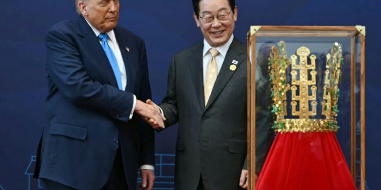 Gyeongju (South Korea) (AFP) – US President Donald Trump may be facing “no kings” protests back home, but in South Korea officials had the perfect gift for the monarch-loving magnate — a replica golden crown. Trump met South Korean counterpart Lee Jae Myung on Wednesday, part of a visit in which he is expected to hold tense trade talks with China’s Xi Jinping.