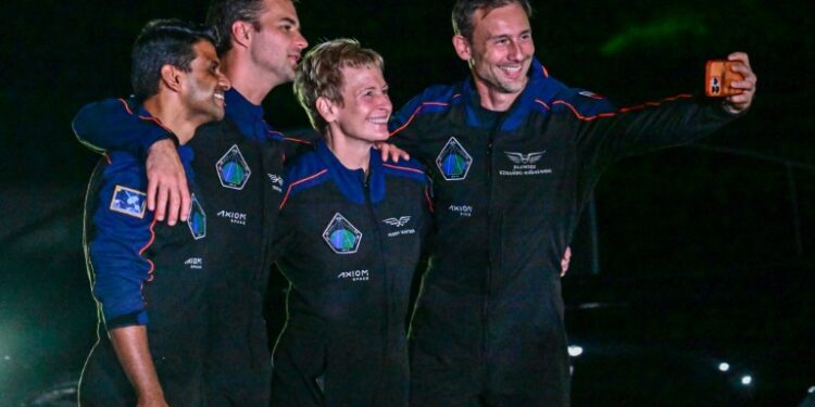 Washington (AFP) – A US commercial mission carrying astronauts from India, Poland and Hungary docked with the International Space Station on Thursday, marking the first time in decades that these nations have sent crew to space.Axiom Mission 4, or Ax-4, lifted off early Wednesday from NASA’s Kennedy Space Center in Florida aboard a brand-new SpaceX Crew Dragon capsule riding a Falcon 9 rocket.Onboard were pilot Shubhanshu Shukla of India; mission specialists Slawosz Uznanski-Wisniewski of Poland and Tibor Kapu of Hungary; and Commander Peggy Whitson of the United States, a former NASA astronaut now with Axiom Space, which organizes private spaceflights.The capsule, the fifth and final Dragon in the SpaceX fleet, was christened “Grace” after reaching orbit.It achieved “soft capture,” or the first stage of docking, with the orbital lab Thursday at 6:31 am Eastern Time (1031 GMT).They later entered the station through the hatch and were greeted by the current ISS crew during a brief welcome ceremony.”It’s so great to be here at last,” said Whitson.”That was a long quarantine.”The crew will now spend about 14 days aboard the station, conducting some 60 experiments — including studies on microalgae, sprouting salad seeds, and the hardiness of microscopic tardigrades in space.- Key step for India -The last time India, Poland or Hungary sent people to space, their current crop of astronauts had not yet been born — and back then they were called cosmonauts, as they all flew on Soviet missions before the fall of the Iron Curtain.Shukla is the first Indian to reach space since Rakesh Sharma, who flew to the Salyut 7 station in 1984 as part of an Indo-Soviet mission.India’s space agency, ISRO, sees this flight as a key step toward its first independent crewed mission, slated for 2027 under the Gaganyaan (“sky craft”) program.”What a fantastic ride,” Shukla said in Hindi after liftoff.”This isn’t just the start of my journey to the International Space Station — it’s the beginning of India’s human space program.”Each country is funding its astronaut’s seat.Poland has spent 65 million euros for its astronaut’s flight, according to the Polish Space Agency.Hungary announced a $100 million deal with Axiom in 2022, according to spacenews.com, while India has not officially commented.The Ax-4 launch comes after technical issues delayed the mission, originally slated for early June.It also follows an online spat between US President Donald Trump and SpaceX chief Elon Musk, the world’s richest person and, until recently, Trump’s ally and advisor.Trump threatened to yank SpaceX’s federal contracts — worth tens of billions of dollars — prompting Musk to threaten an early retirement of Dragon, the only US spacecraft currently certified to carry astronauts to the ISS.Musk walked back the threat a few hours later and in the days that followed continued to deescalate, stating on X that he had gone “too far.”Any falling out between SpaceX and the US government would be massively disruptive, given NASA and the Pentagon’s reliance on Falcon 9 and Falcon Heavy to send up crew, cargo, satellites and probes.But for now, analysts believe both sides are too entangled to risk a serious break.