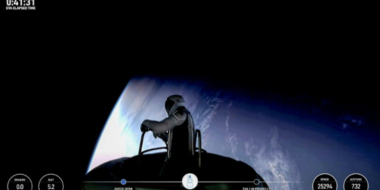 Washington (AFP) – A pioneering private crew made history Thursday by performing the first commercial spacewalk, with NASA hailing it as “a giant leap forward” for the space industry. The SpaceX Polaris Dawn mission, led by fintech billionaire Jared Isaacman, launched Tuesday from the Kennedy Space Center in Florida, journeying deeper into the cosmos than any humans in half a century, since the Apollo era.
