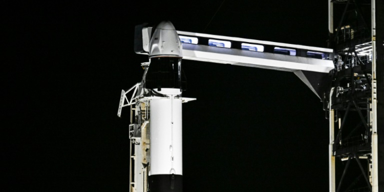 A SpaceX Falcon 9 rocket with the Crew Dragon Resilience capsule sits on Launch Complex 39A at Kennedy Space Center ahead of the Polaris Dawn Mission in Cape Canaveral, Florida, on August 28, 2024. ©AFP