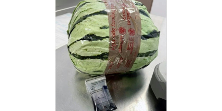 Los Angeles (United States) (AFP) – Smugglers disguised $5 million worth of methamphetamine as watermelons and tried to truck them across the border from Mexico, US border agents said. More than 4,500 pounds (2,000 kilograms) of the addictive drug were wrapped in paper packages painted to look like the juicy fruit and hidden amongst other cargo.