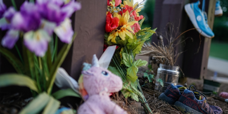 Along the edge of Lake Herrick in Athens, Georgia is a makeshift memorial to Laken Riley, a 22-year-old student who was murdered while out for a morning jog / ©AFP