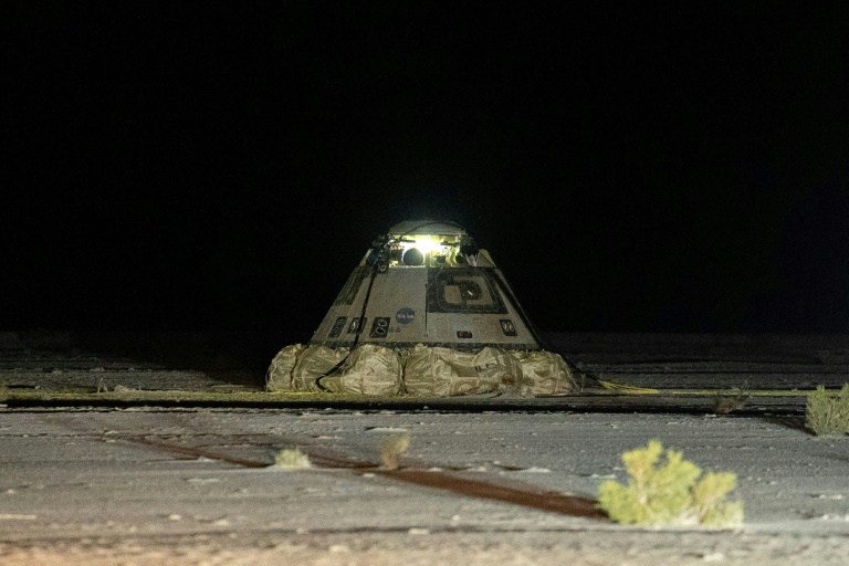 Washington (AFP) - Boeing's beleaguered Starliner made its long-awaited return to Earth on Saturday without the astronauts who rode it ...