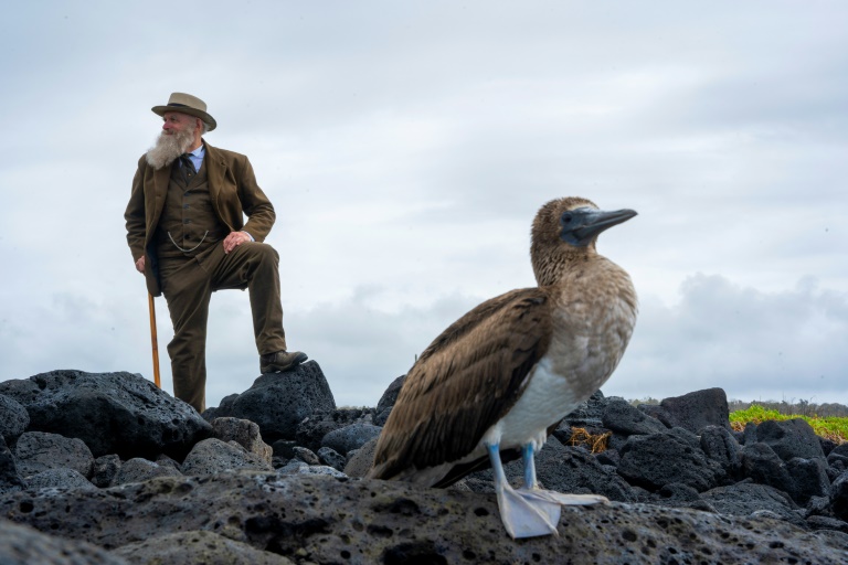 Puerto Ayora (Ecuador) (AFP) - With a long grey beard and old-school brown suit, a Charles Darwin lookalike observes marine ...